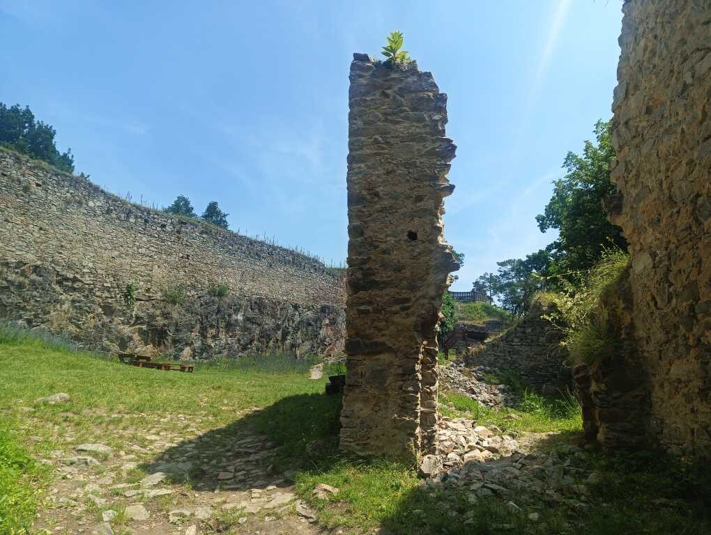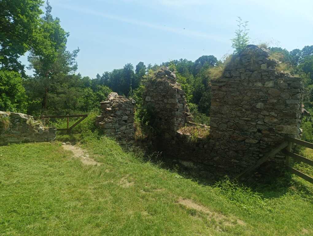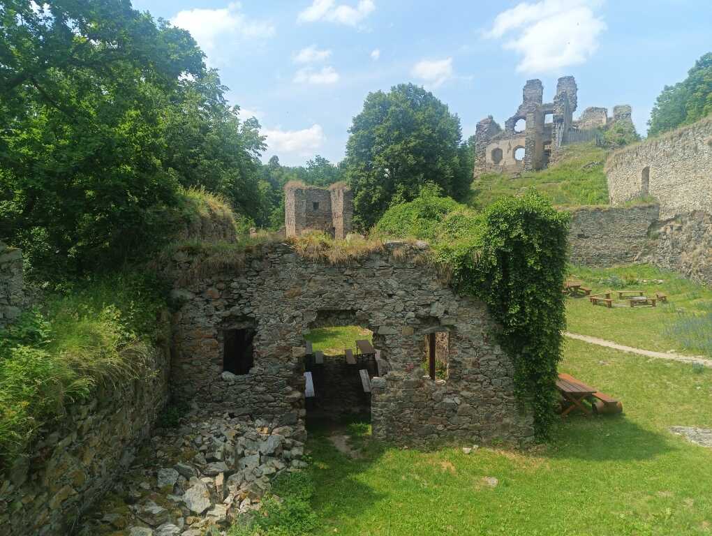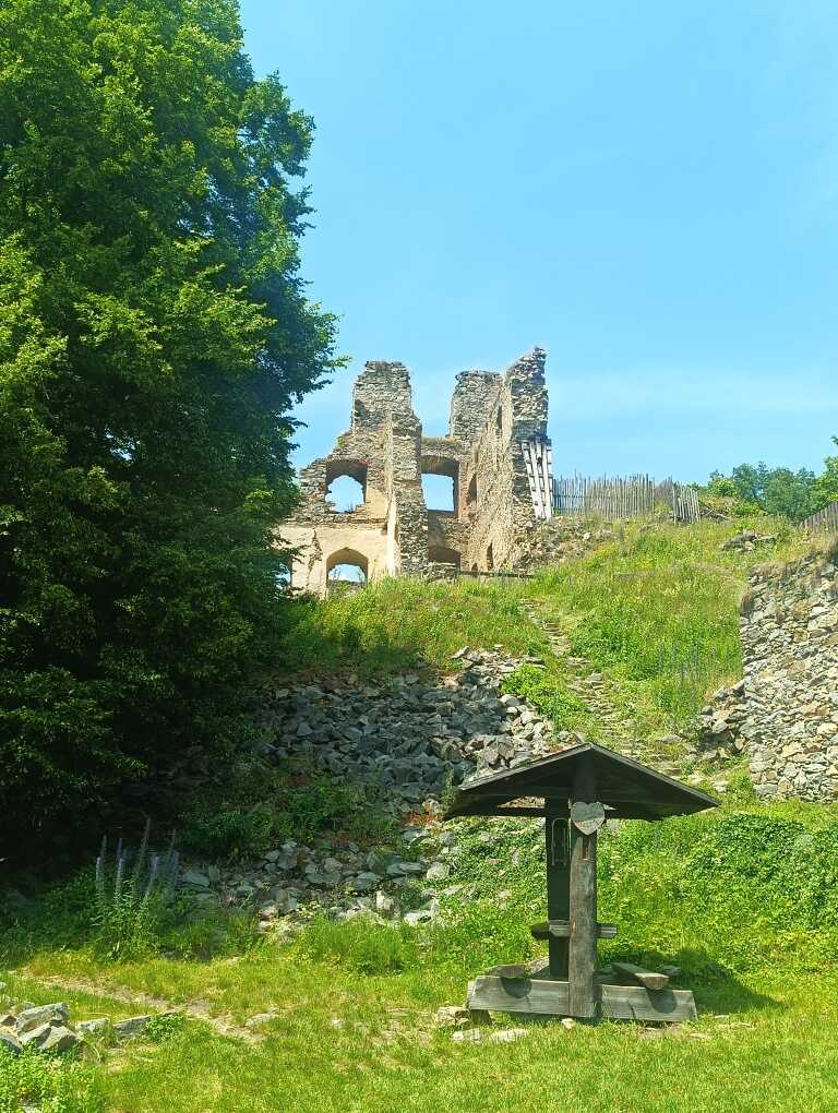 ... Ve zříceninách hradu prý přebývá sám král trpaslíků, hlídající zdejší poklady. Je to mužíček s dlouhými šedivými vousy, který s oblibou vysedává na balvanu nad potokem a silně kýchá. Toho, kdo na jeho kýchnutí odpoví tradičním pozdravem, odmění, běda však tomu, kdo by se mu chtěl posmívat. Zchudlý sedlák chtěl z rozvalin odvézt kámen na stavbu nového domu. Za jeho zády někdo kýchl. Sedlák řekl "pozdrav pánbůh", ale nikoho neviděl, myslel si, že někdo ze vsi si z něho tropí posměch. Na třetí kýchnutí tedy odpověděl zaklením. V tu chvíli se setmělo, z puklin v kamenech vyskakovali roztodivní skřeti s píšťalami a bubínky a křepčili kolem ubohého sedláka. Pak se celý průvod rázem proměnil v tchoře, lišky, divoké kance a medvědy. Sedlák hrůzou omdlel. Poklad tedy čeká dál na dobře vychovaného člověka ...