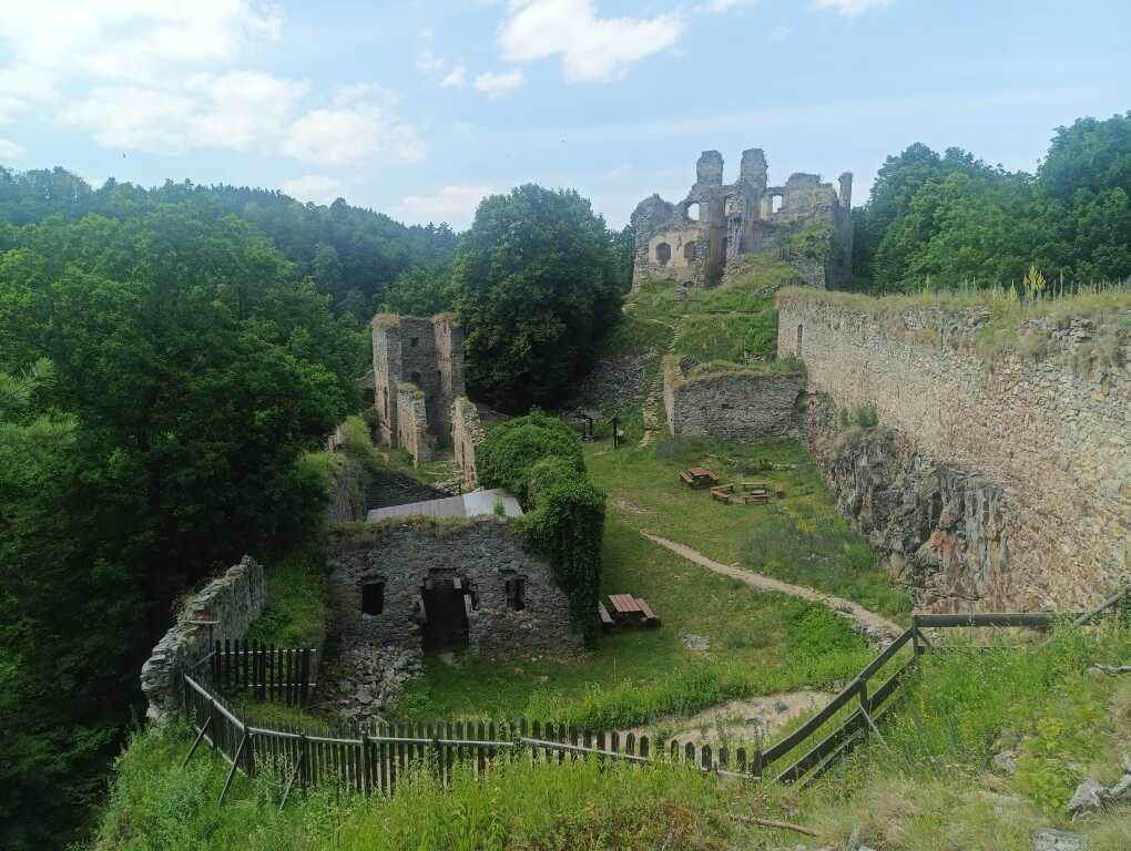 Patřil k největším hradům v Čechách - byl dlouhý 210 metrů a široký v průměru 45 metrů, chráněný soustavou příkopů, hradeb a věží. Jádro tvořilo dva protilehlé paláce, spojené vysokými zdmi, které uzavíraly nádvoří. Obě palácové budovy se dochovaly v téměř původní výši tří poschodí, jedna z nich obsahuje i zdivo kaple. Z velké válcové věže na nejvyšším místě hradní skály zůstaly jen základy, pod věží leží předhradí s hospodářskými budovami.