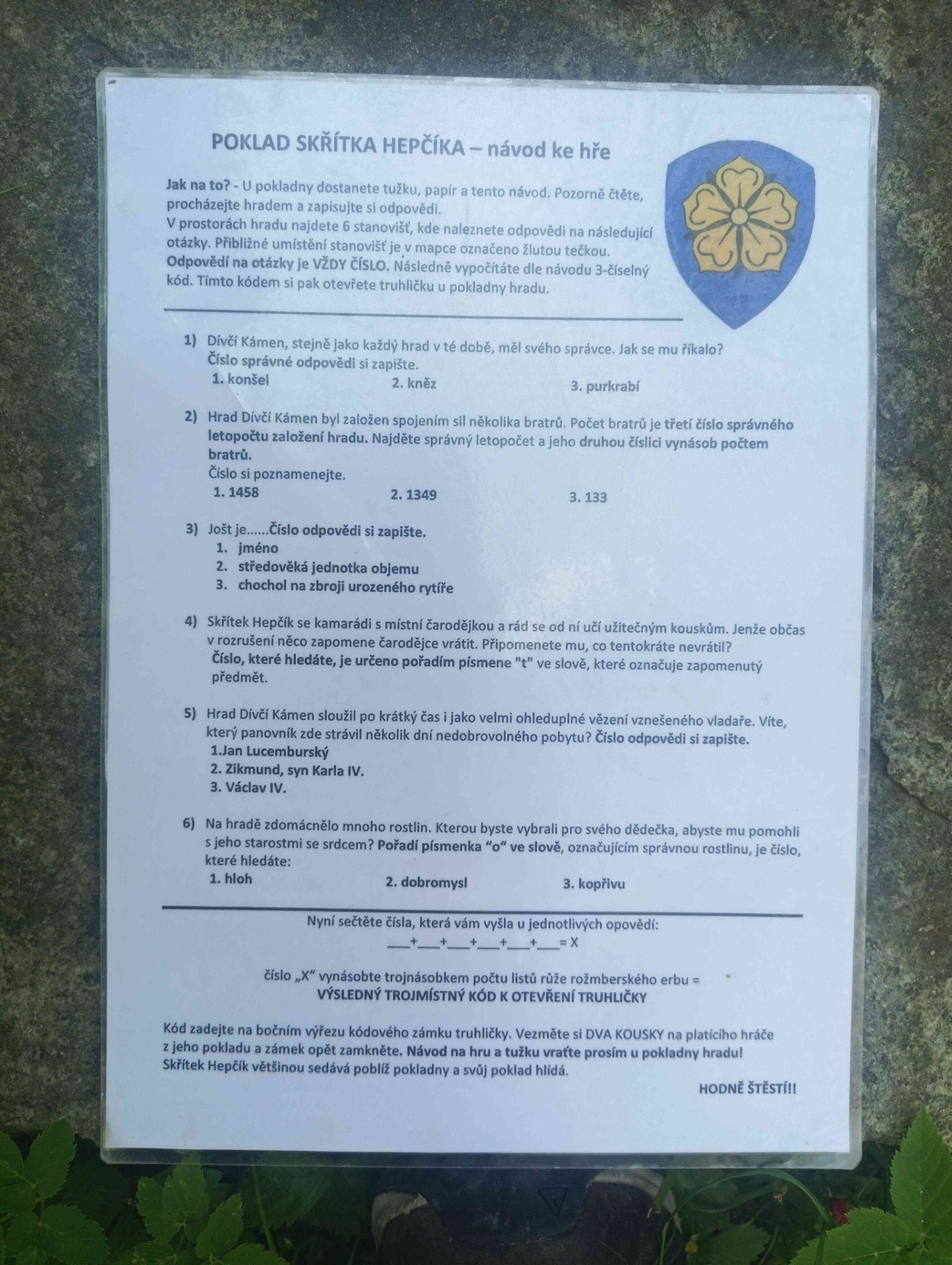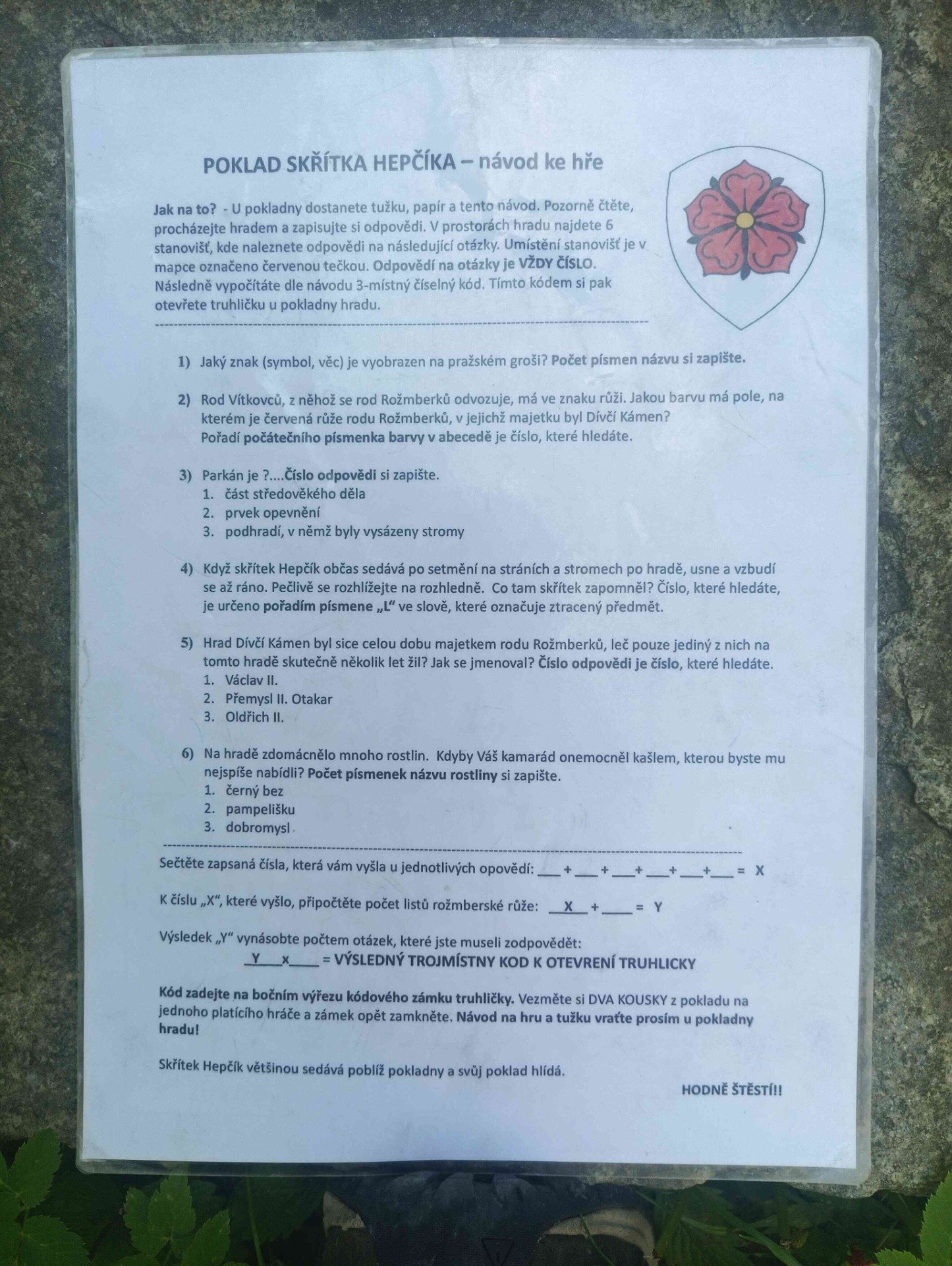 Úžasné zpestření dne nám přichystal skřítek Hepčík. Pěkná hra a ne pro malé děti, my se zapotily, a to i víckrát :-) Nejdříve tedy důkladně naštudovat pravidla ... pak hledat rožmberské růže ... a pak doplnit tajenku ... jak prosté, milý Watsone!