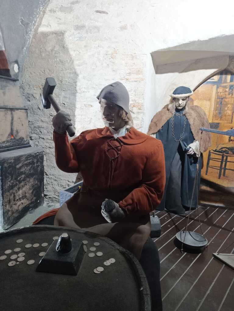 V Českém muzeu stříbra si můžeme Pražský groš sami nejen vyrazit, ale zároveň se dozvíme i historii pregéřského díla ... Je to vlastně poslední pracovní krok výroby mince. Pregéř převzal od úředníků mince přidělený počet vybělených mincovních plátků, kolkař mu přidělil raznici a on zasedl na pregéřskou stolici. Ta se skládala z dřevěného špalku a sedadla. Na spodní raznici, zabudovanou napevno v pracovní desce, položil pregéř mincovní plátek. Přiložil horní raznici a mohutným úderem - rázem pregéřského kladiva - vyrazil minci. Aby byla mince vyražena čistě a kvalitně, musel být pregéřův úder kladivem přesný. Kladivo bylo proto speciálně vytvarováno do mírného oblouku tak, aby udeřilo na minci stejnoměrně plnou údernou plochou. Úhoz na raznici musel být i pružný. Proto se špalek, v němž byla zapuštěna spodní raznice, zasazoval do sudu bez dna, vyplněného směsí uhelného prachu s hlínou.