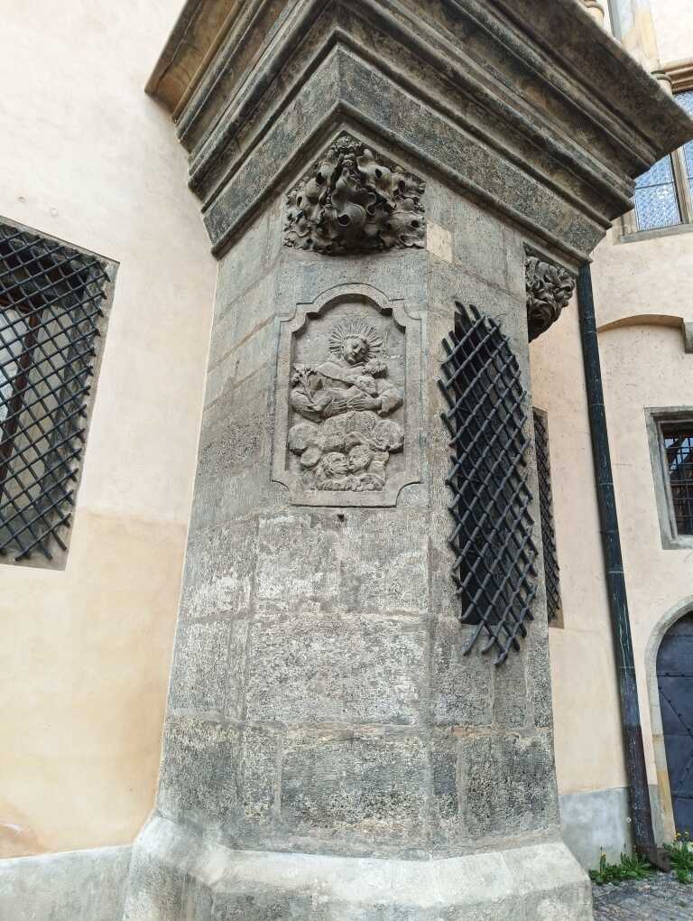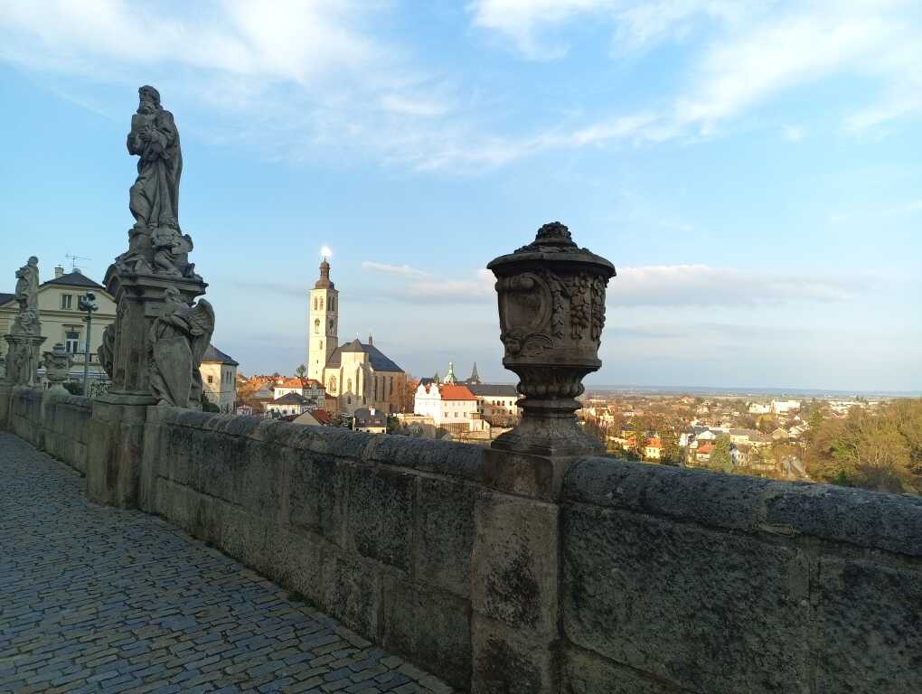 Rozsáhlá sochařská výzdoba, pro kterou je tento prostor přirovnáván ke Karlovu mostu v Praze, byla zhotovena mezi lety 1709 - 1716. Autorem soch je pravděpodobně jezuitský sochař František Baugut.