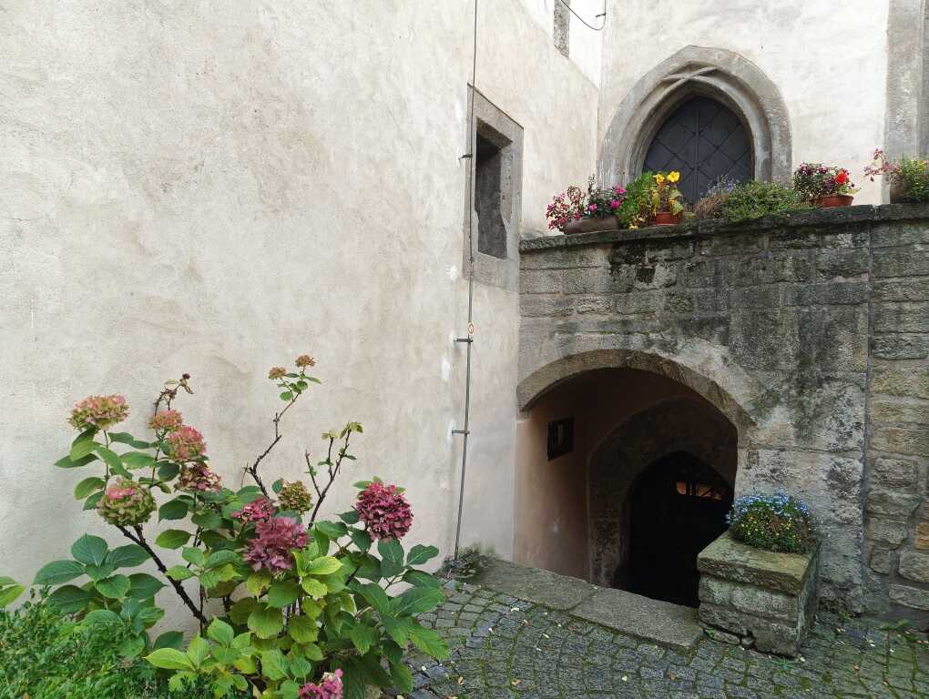 Pod Jezuitskou kolejí leží Hrádek. Předchůdcem byla nevelká dřevěná tvrz založená na přelomu 13. a 14. století. Měla přispět k ochraně vznikajícího hornického sídliště od západu, které bylo snadno zranitelné z pláně, na níž dnes stojí právě Jezuitská kolej a chrám svaté Barbory. První písemná zmínka o Hrádku pochází z roku 1312. Na počátku 15. století byl majitelem Hrádku královský rychtář Václav z Donína. Hrádek následně vlastnily rodiny královských oblíbenců, úředníků královských i městských, rodiny zbohatlých rukokupců. Nejvýznamnějším majitelem se stal proslulý obchodník s rudou a mědí a majitel dolů Jan Smíšek z Vrchoviště, který nechal Hrádek poškozený za husitských válek přestavět ze středověké tvrze na patricijský palác ve stylu vladislavské gotiky, s velkými sály, arkýři, kaplí, kdy byla použita výzdoba s hornickými motivy i již renesanční malované stropy.
