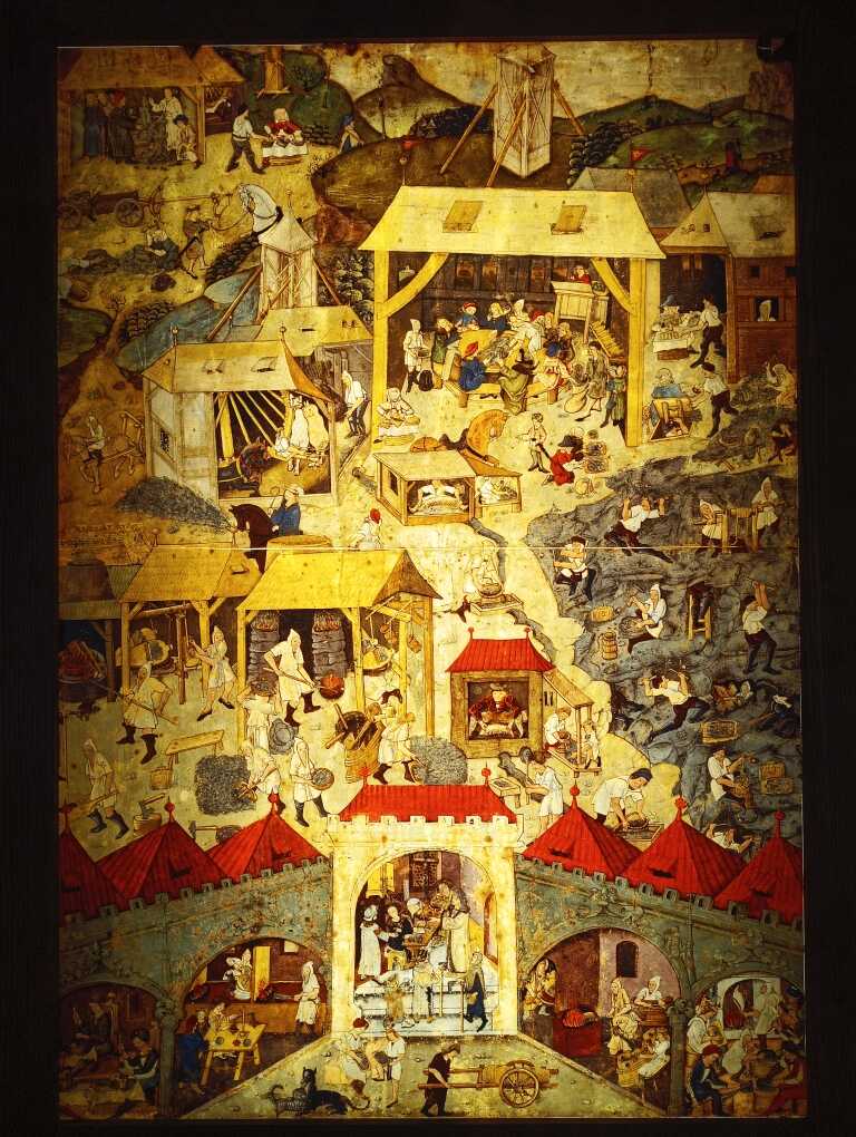 Kolem roku 1500 zde pracovalo asi 150 až 200 pracovníků různých profesí. Ti se sdružovali do jakýchsi spolků, obcí, pořádků, cechů. Již od 1. pol. 14. století zmiňují prameny profesní obec nejen havířů a uhlířů, nýbrž i hutníků-prenéřů a mincířů. Obec vždy vystupovala jednotně a hájila společné zájmy svých členů. Příslušníci obce se podle svého pracovního zařazení a společenského postavení dělili na starší obce, knapy a mladší obce, robence. Do čela byli voleni konšelé obce. Jednotlivá sdružení zastupovala své členy ve společenských, prestižních zájmech a vykonávala i určitou funkci sociální. Především pro zestárlé, zmrzačené a nemocné členy, či jejich vdovy. Představitelé obcí vstupovali i do jednání s mincmistrem a samotným králem, aby si prosadili a udrželi určité společenské výsady ...