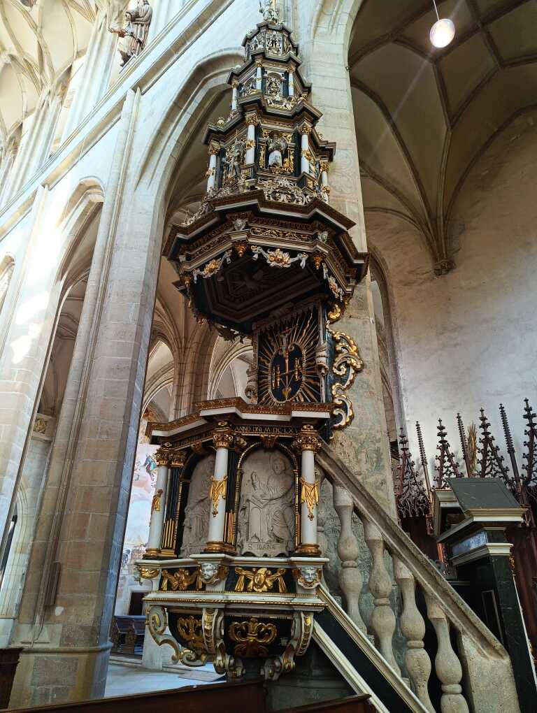 A roku 1624 pak: Ve čtvrtek po památce sv. Bartoloměje apoštola, 29. měsíce Augusti, nařízením nejvyššího mincmistra Viléma z Vřesovic sňat jest z kostela Barborského na Horách Kutných kalich velký, pozlacený, na štítu před lety postavený; a to dolů snětí stalo se na potupu evangelitského religionu se přidržícím.