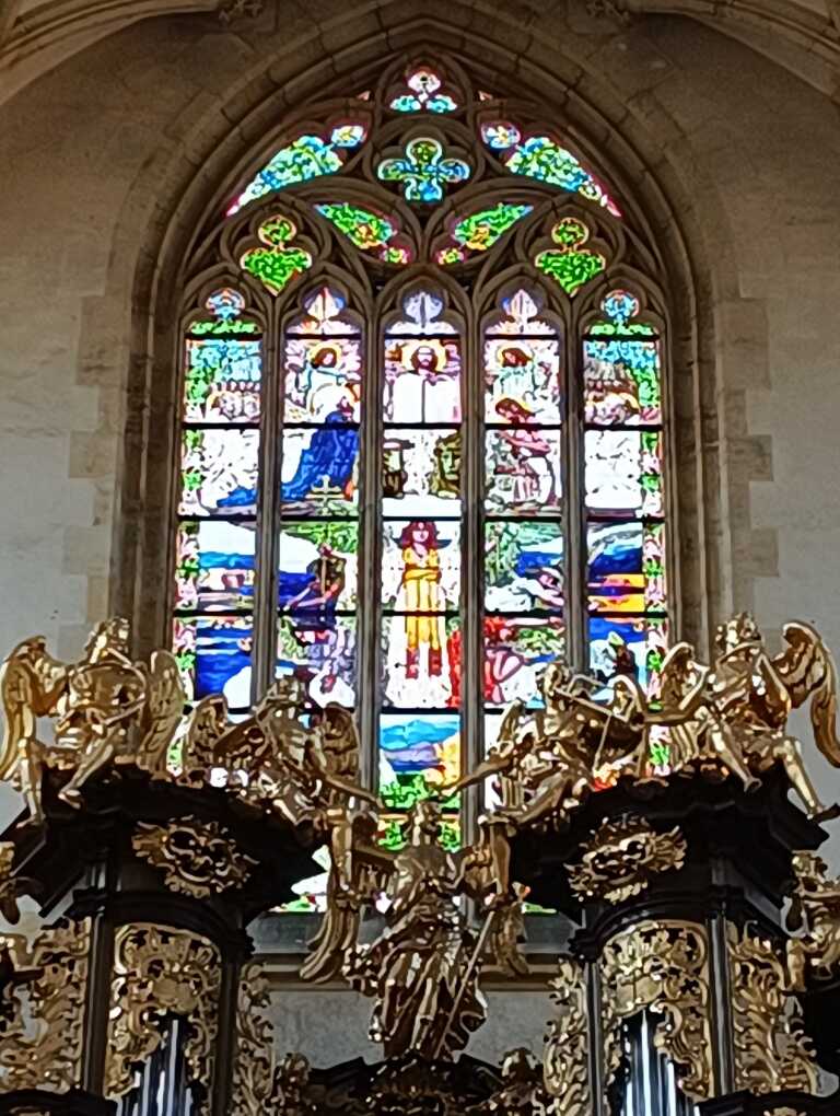 Štědří donátoři novogotické obnovy nechali začátkem 20. století vyzdobit velkou část oken vitrážemi, na nichž malíř František Urban ztvárnil řadu čistě křesťanských motivů, ale i významné události své současnosti, např. návštěvu chrámu tehdejším císařem Františkem Josefem I.