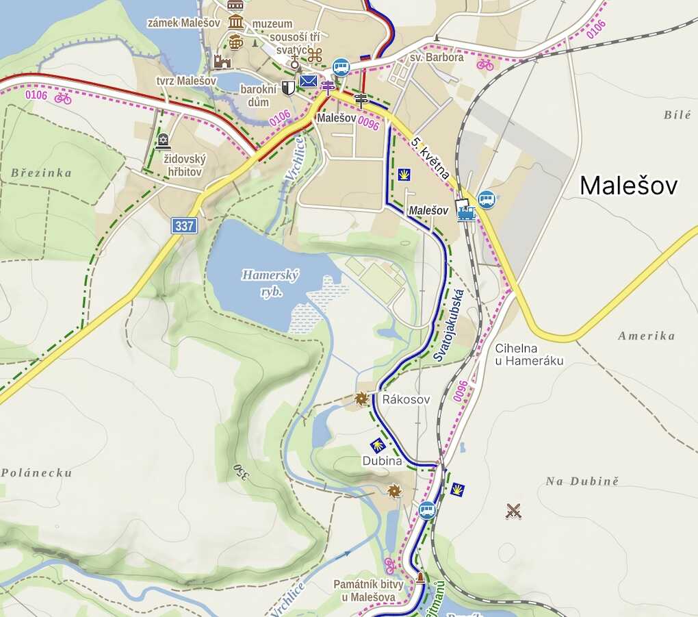 Proti středověké tvrzi v bývalém zámku je dnes Muzeum Malešov. Najdeme zde pamětní desku věnovanou památce místního rodáka, politika, novináře a lingvisty Karla Jonáše. Prohlédnout si zde můžeme expozici nejen o historii Malešova, ale také o historii tvrze, bitvě u Malešova, židovské komunitě, dolování, pivovarnictví, místních rodácích, spolcích, přehradě atd.
