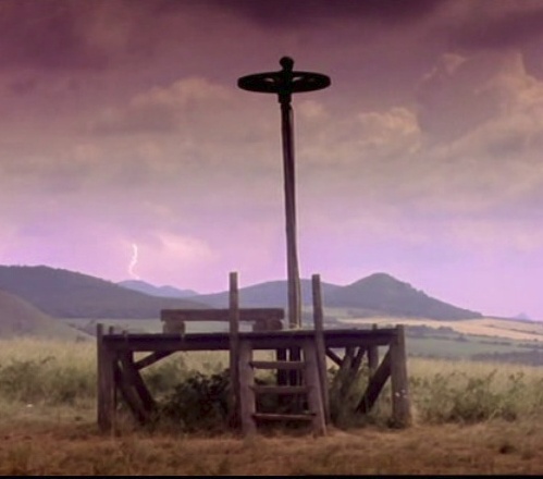 Dvorec zapálený, nádvořím krev proudí, na zvráceném sudě Petr Dulík soudí.